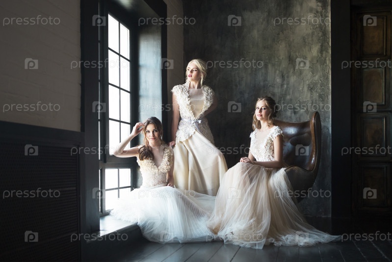 Молодые женщины возле окна в свадебных платьях