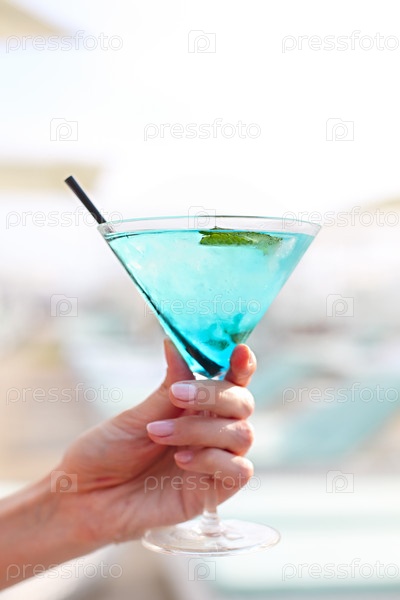 Экзотический коктейльный стакан в женской руке