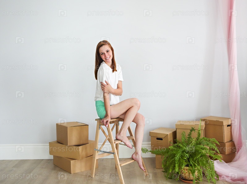 Молодая женщина в новой квартире после переезда