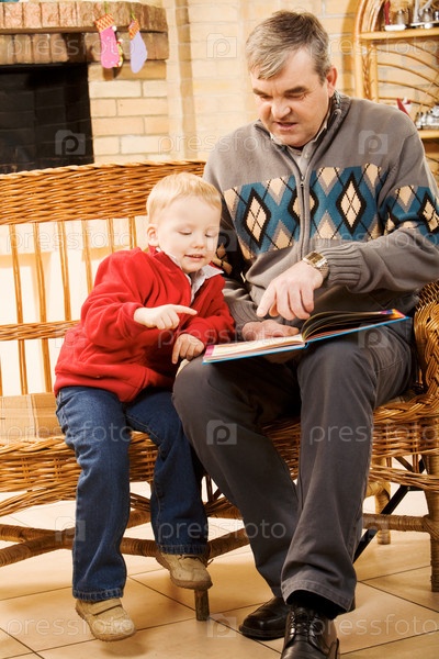 Портрет внимательного мальчика, смотрящего на дедушку, в то время как последний что-то говорит