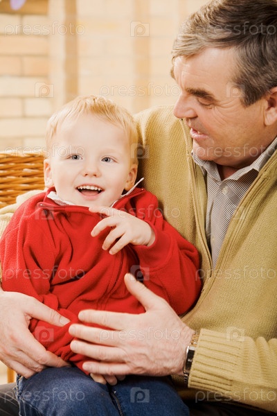 Портрет внимательного мальчика, смотрящего на дедушку, в то время как последний что-то говорит