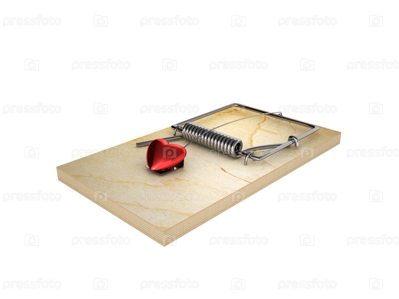 Мышеловка и сердце, изолированные на белом фоне
