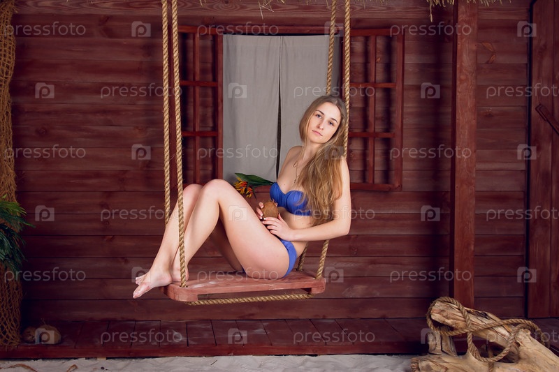 Девушка на качели на пляже