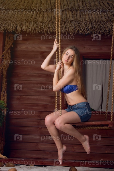 Девушка на качели на пляже