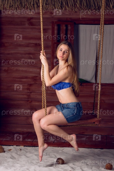 Девушка на качели на пляже