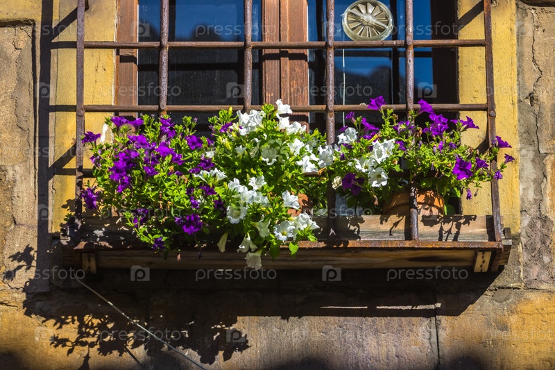 Горшок с цветами на типичной улице старого города Флоренции