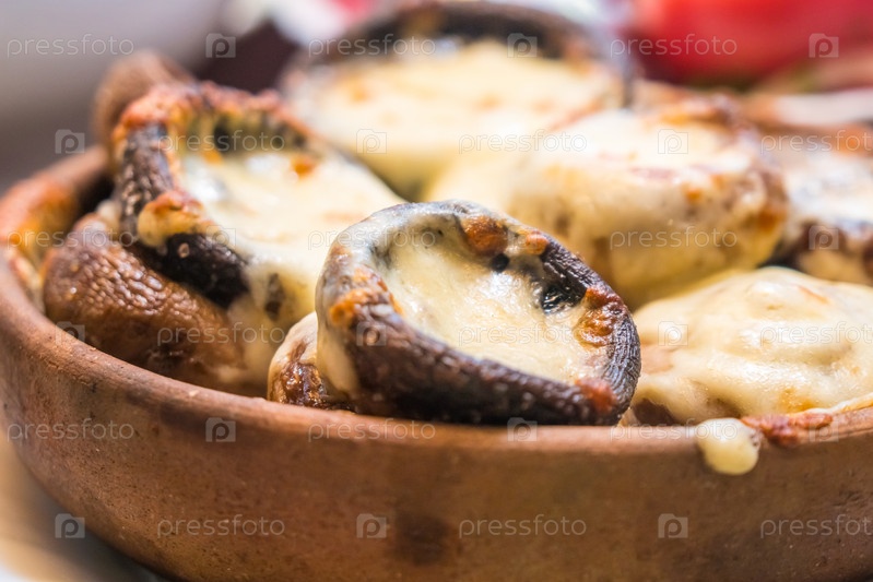 Наполненные грибы с сыром на горшке, грузинская кухня