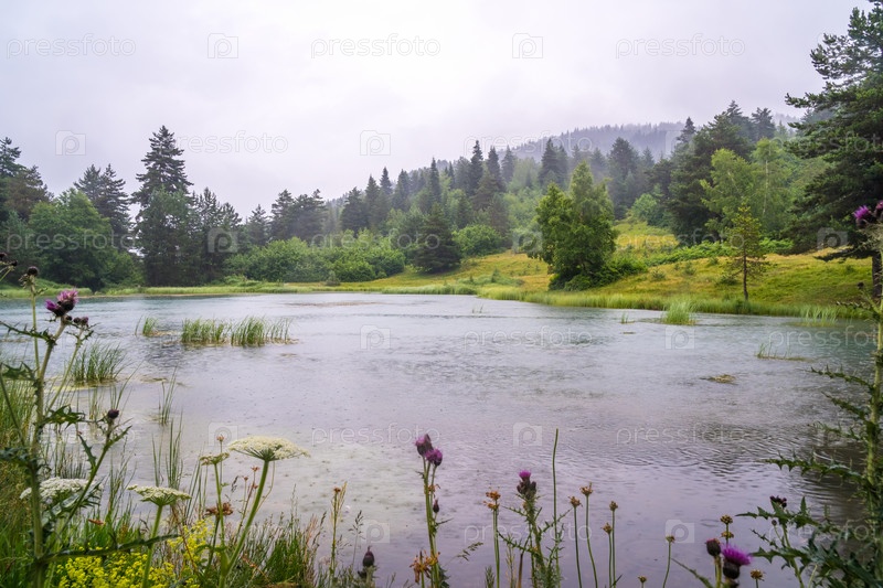 Озеро в горах в дождливый день, Верхняя Сванетия