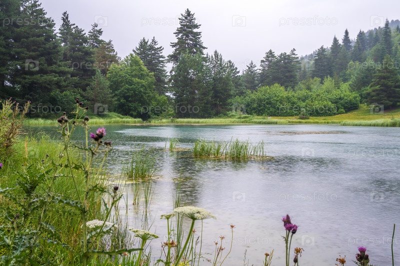 Озеро в горах в дождливый день, Верхняя Сванетия