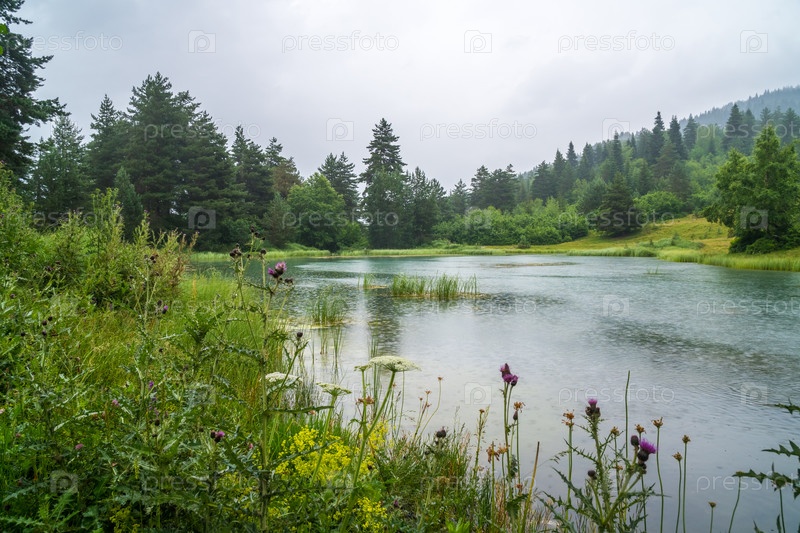 Озеро в горах в дождливый день, Верхняя Сванетия