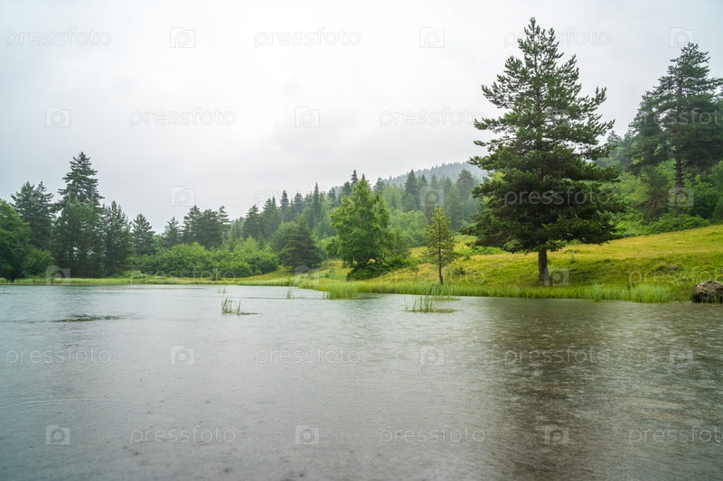 Озеро в горах в дождливый день, Верхняя Сванетия