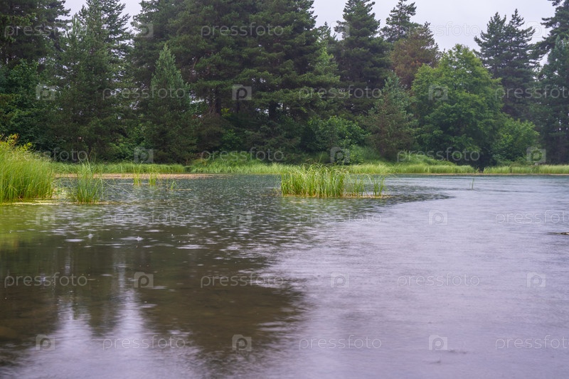 Озеро в горах в дождливый день, Верхняя Сванетия