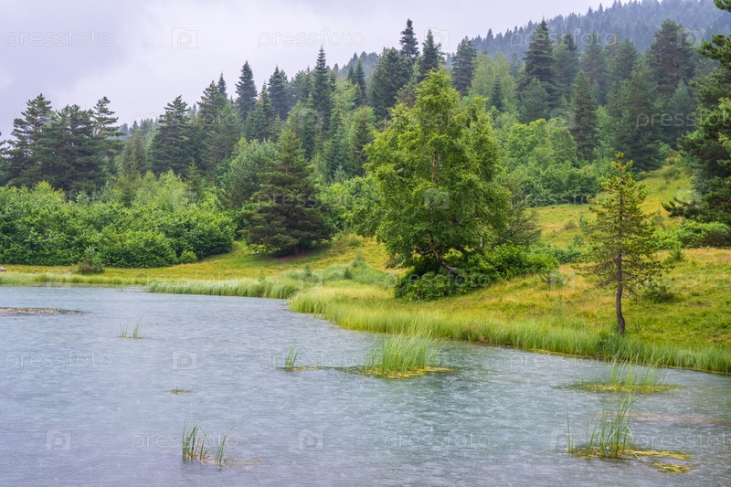 Озеро в горах в дождливый день, Верхняя Сванетия