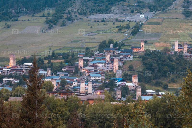 Башни в деревне Местья в районе Сванетии Кавказские горы в Грузии