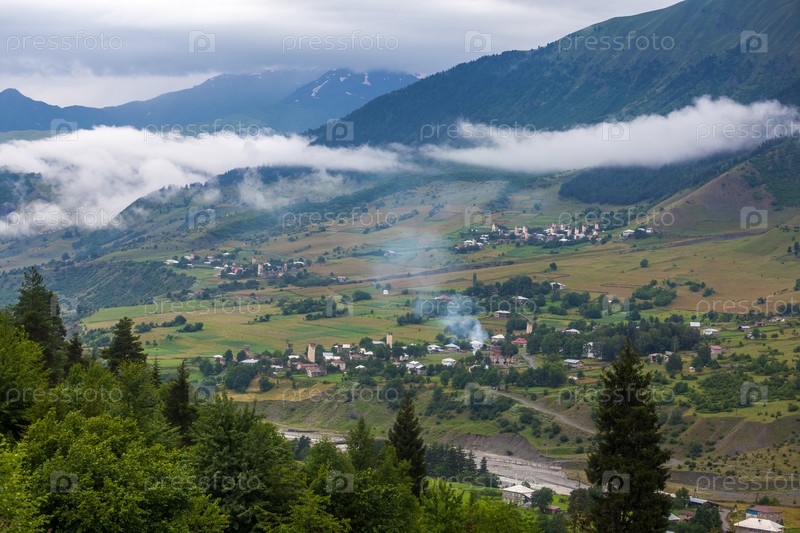 Прекрасный вид на деревни Сванетии со средневековыми башнями