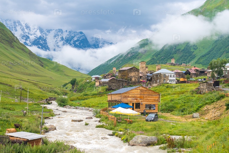 Ушгули - самая высокая населенная деревня в Европе Кавказ, Верхняя Сванетия - Всемирное наследие ЮНЕСКО Грузия