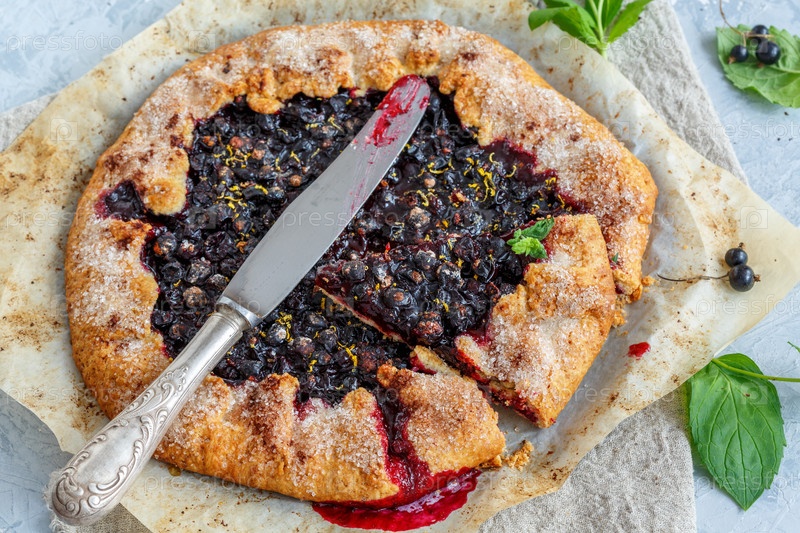 Вырежьте пирог с черными смоковницами и нож
