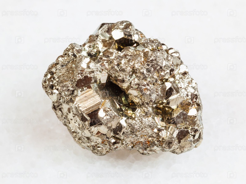 Кристаллический камень пирита железа на белом