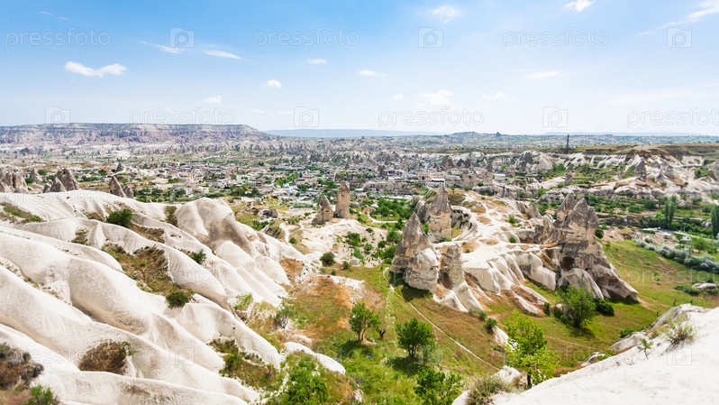 Горный склон и город Гореме в Каппадокии