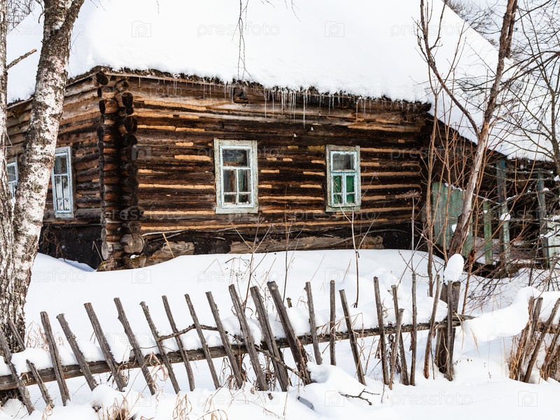 Старый русский деревянный сельский дом зимой