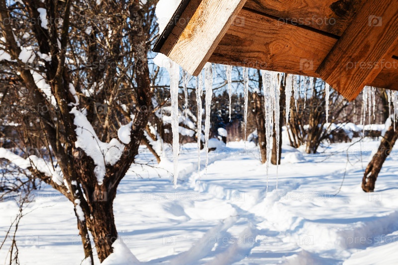 Ледники от таяния снега на краю крыши
