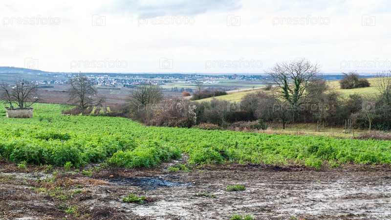 Поле и виноградники в Эльзасе зимой