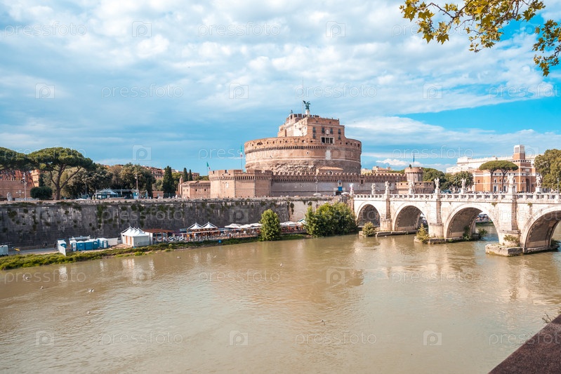 Замок Святого Ангела и мост через реку Тибр в Риме