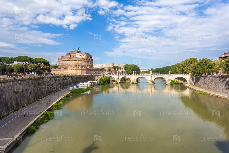 Замок Святого Ангела и мост через реку Тибр в Риме