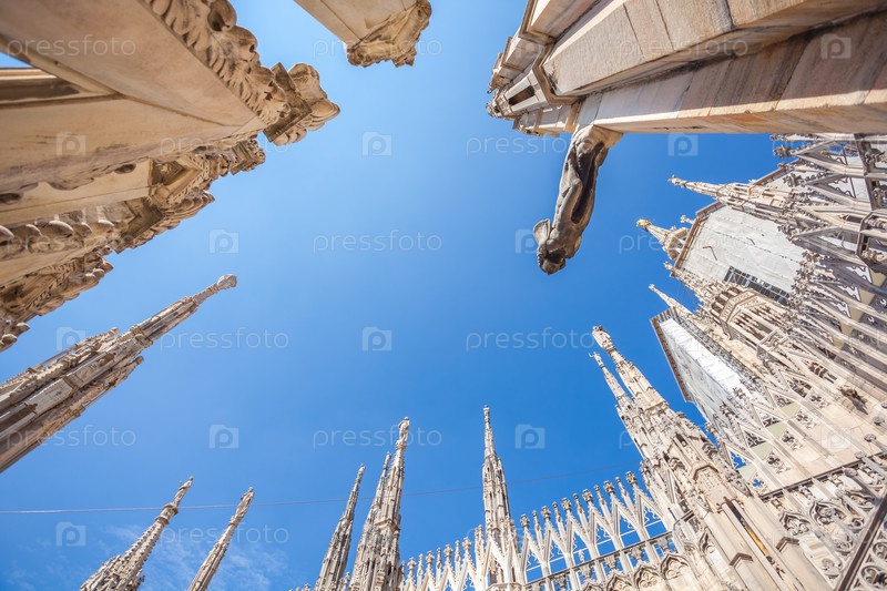 Вид на готическую архитектуру и искусство с крыши Миланского собора (Duomo di Milano), Италия
