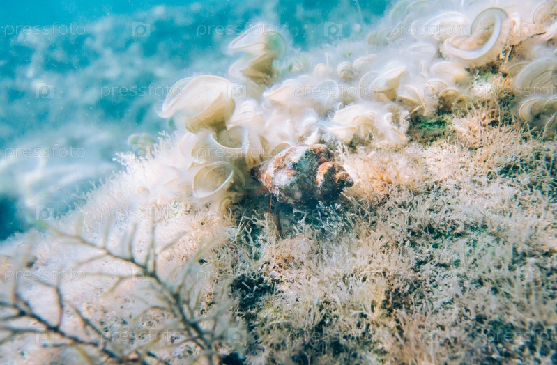 Подводные моллюски среди морских водорослей