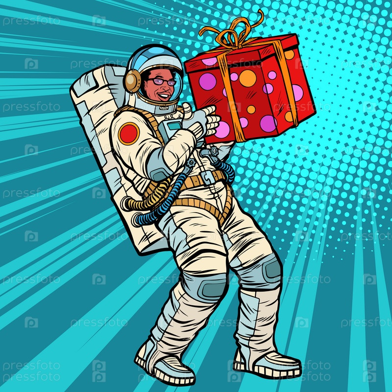День рождения астронавта с подарком. афроамериканцы
