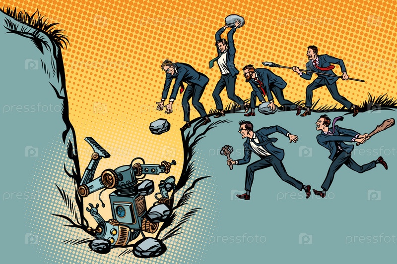 Дикие бизнесмены убивают робота, борются за рабочие места