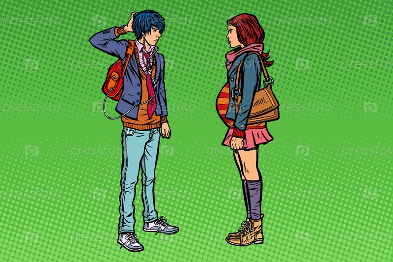 Смешанный молодой человек и беременная девушка. подростковый секс