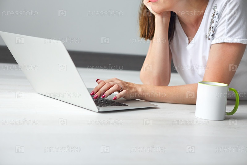 Молодая женщина с компьютером в помещении