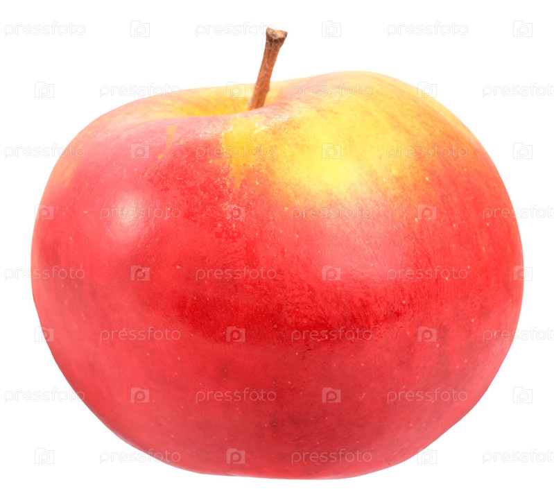 Красно-желтое яблоко, изолированная на белом фоне. Крупный план
