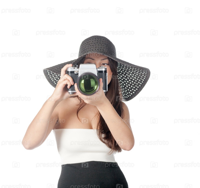 Девушка со старинным фотоаппаратом