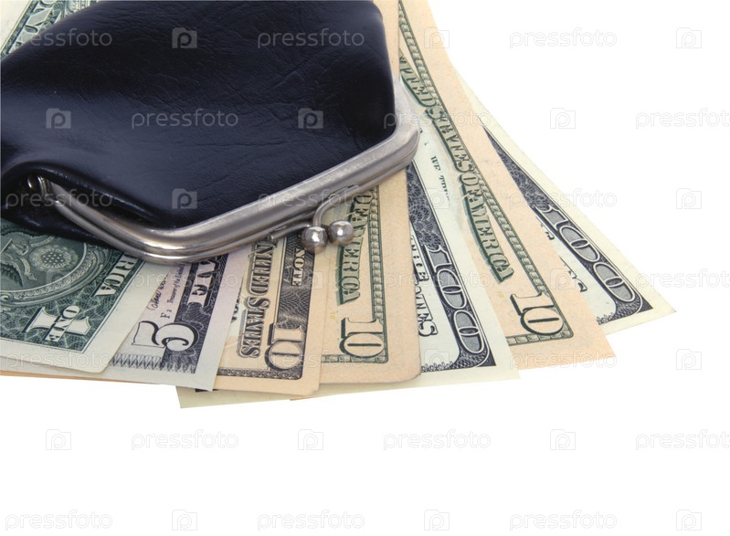 Ретро кошелек и доллары на белом фоне