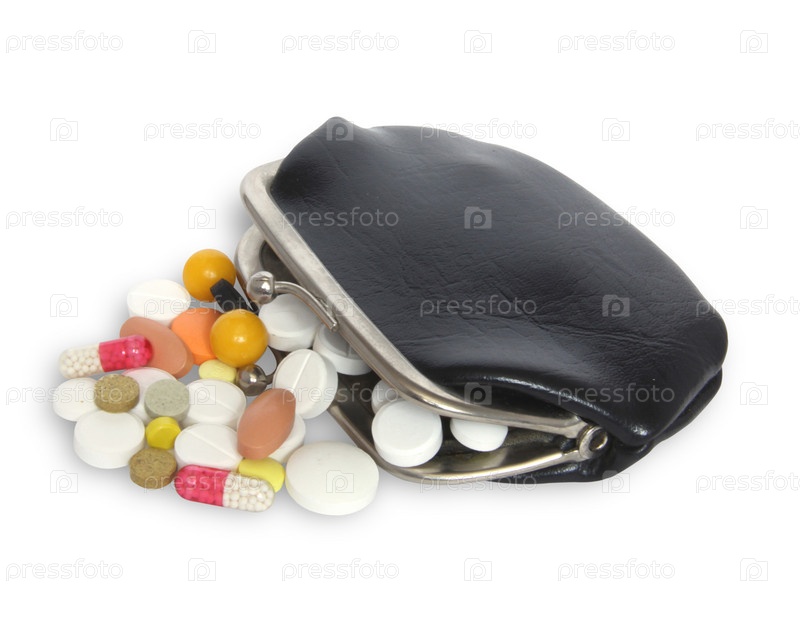 Ретро кошелек с таблетками на белом фоне