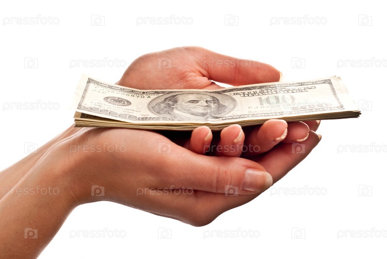 Деньги в руках на белом фоне