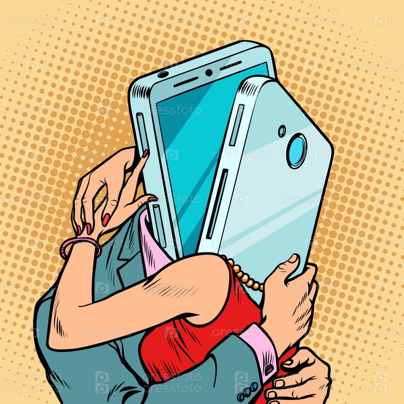 Виртуальные свидания мужчина и женщина обнимаются.Любящая пара