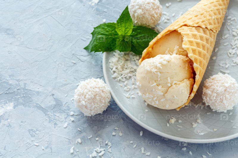 Конус с кокосовым мороженым и кокосовыми трюфелями