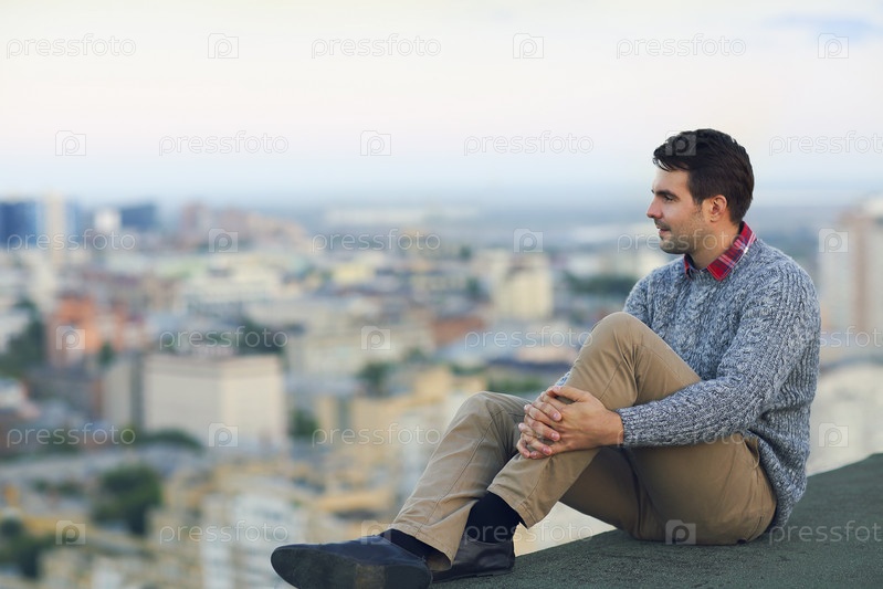 Молодой человек сидит на крыше