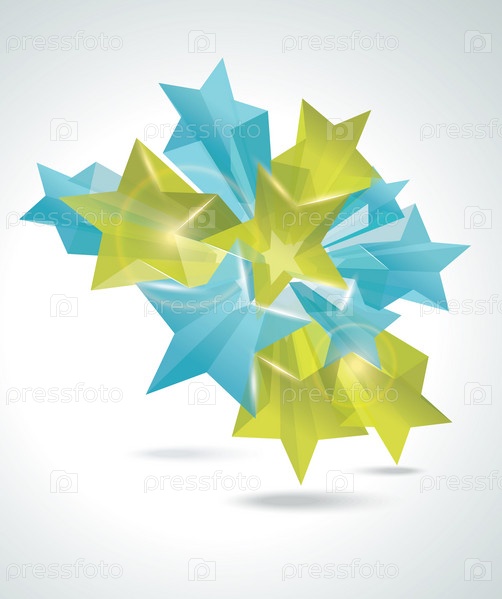 Абстрактный красочный фон с 3D стеклянными звездами