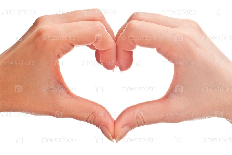 Сердце из двух женских рук на белом фоне