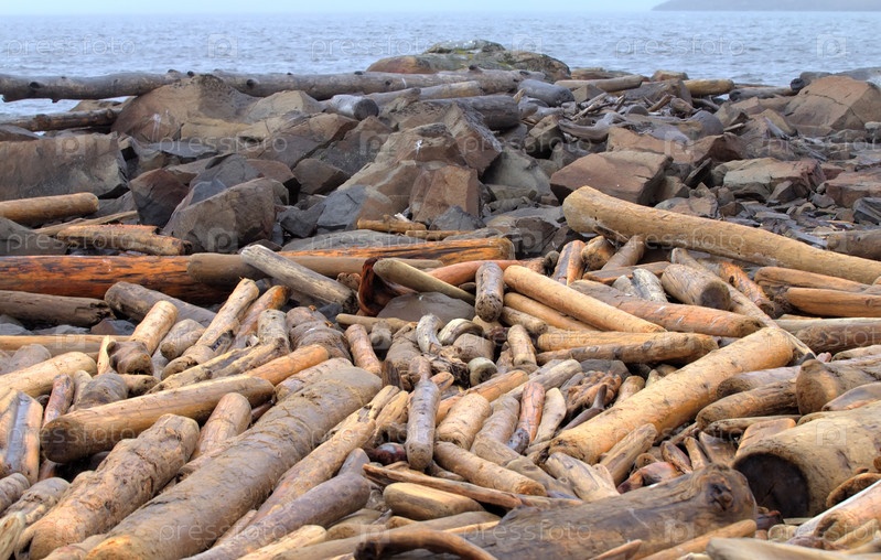 Брошенная древесина на побережье океана