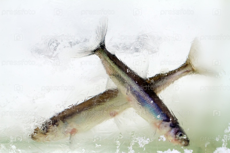 Корюшка, osmerus eperlanus, зимой под льдом