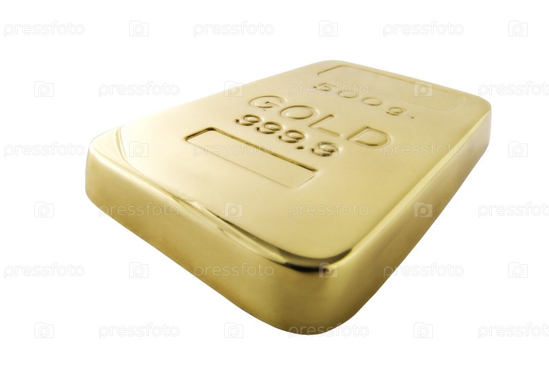 Золотой слиток на белом фоне