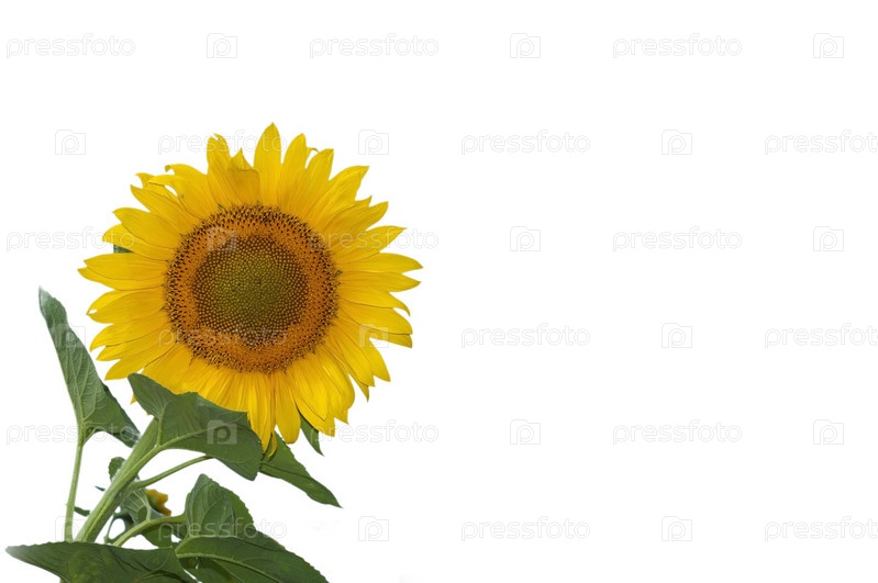 Цветущий подсолнух на белом фоне