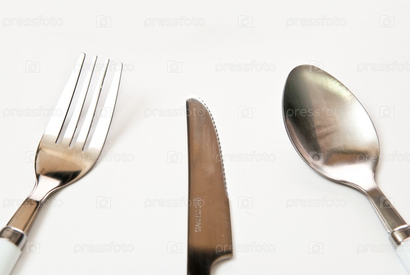 Столовое серебро на белом фоне