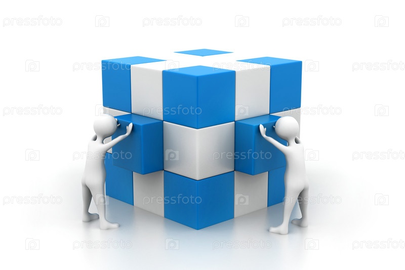 Люди собирают коробку (Концепция коллективной работы)
